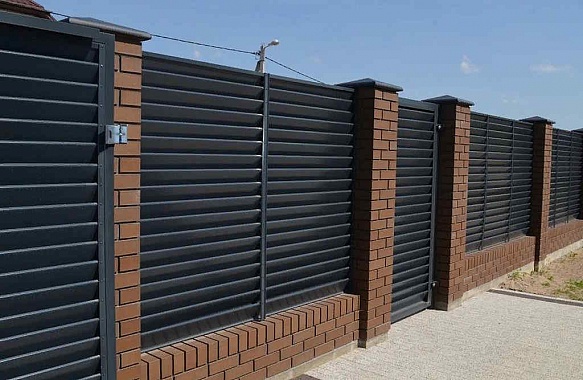 Главная / Забор жалюзи / Жалюзи заборы с кирпичными столбами